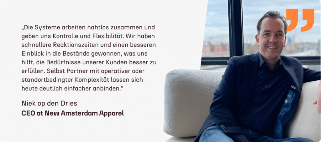 Mit einer einheitlichen ERP-Software für Mode und Fulfillment ist New Amsterdam Apparel von fragmentierten, manuellen Prozessen zu einem stabilen, skalierbaren System übergegangen, das sich leicht erweitern lässt, wenn neue Partner und Kanäle hinzukommen.